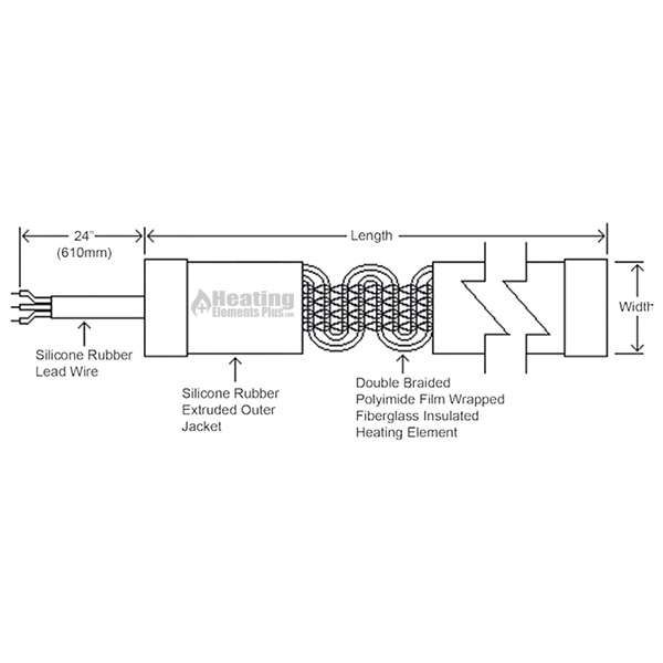 Grounded Silicone Rubber Heating Tape without controls for easy temporary heat. Designed for high temperature process control solutions. This heat tape will require a controller or it will overheat.
