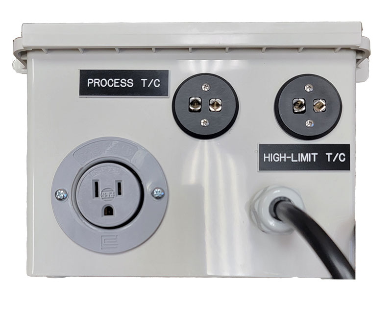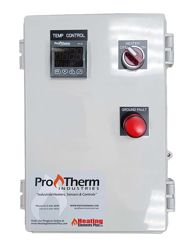 Protherm’s HHCP15 heated hose process control panel, complete with 30mA GFI breaker. Dual digital process controllers with “optional” Hi-Limit controller. 120 or 240 volt options. 15 Amps.