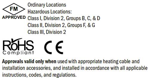 Approval valid only when used with appropriate heating cable and installation accessories, and installed in accordance with all applicable instructions, codes, and regulations.