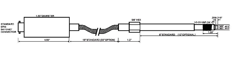 Melt Pressure Transducer 1500psi 12 inch stem + 18 inch flex