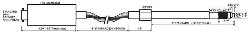 Mercury Free 10,000psi 6″ stem + 18″ flex