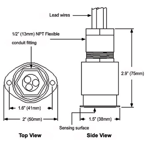 Narrow Space Bare Transmitter 10,000psi 10" capillary + 18" flex