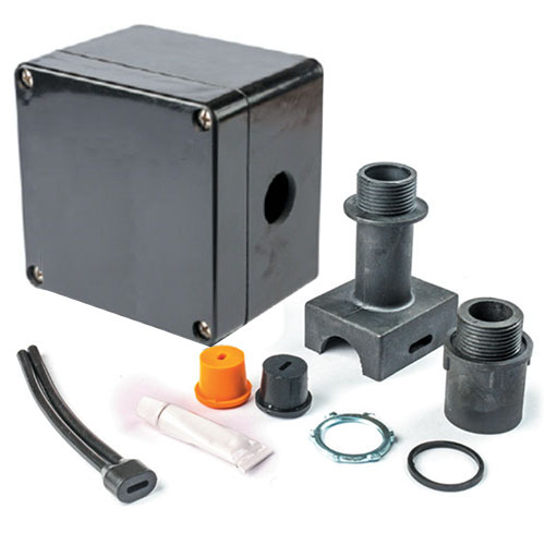 NEMA 4X rated junction box designed to connect constant wattage heating cables to customer supplied power wiring. This kit provides water-resistant cable entry for one cable, enclosure support, terminal block, and a water-resistant corrosion-resistant wiring enclosure with a 3/4” opening to accept a conduit hub. A pipe strap is required to attach this model to a pipe. Small pipe adapter is available for pipe size less than 1-1/2”.